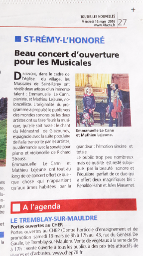 03/16 : concert d'ouverture des musicales de St Rémy l'Honoré